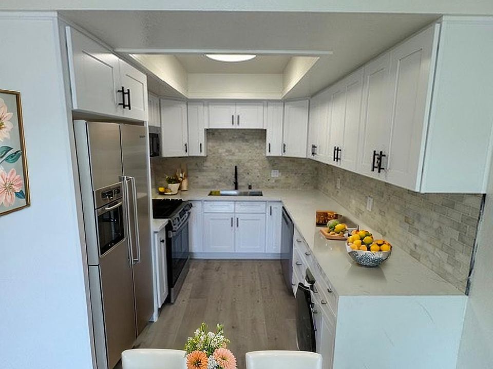Spacious 1-Bedroom Retreat in the Heart of Huntington Beach Enjoy coastal living in this bright and airy upstairs 1-bedroom, 1-bath home, featuring stylish laminate flooring throughout and a fully updated kitchen with sleek new appliances and stunning quartz countertops. The open layout flows seamlessly to a private balcony perfect for entertaining guests or enjoying a quiet evening outdoors. Located in the vibrant heart of Huntington Beach, you're just minutes from local parks, restaurants, and the beach, offering the ideal mix of comfort and convenience.