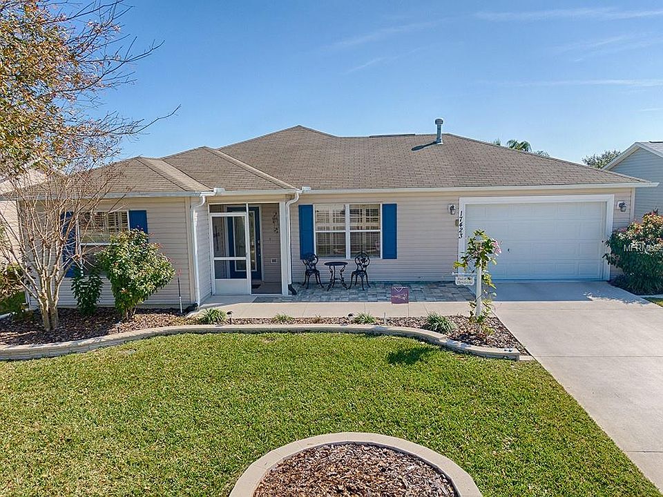 Take a good look at this Stunning Austin layout home located in The Village of Chatham just 6 houses away from the recreation center. This area is known for beautiful trees, mature landscaping, a little more space in the yard, quieter streets, ease of going to Spanish Springs, Mulberry Plaza (VA Clinic located there) or Lake Sumter, some of the best golf courses and country club restaurants. This is no ordinary home let me tell you...New HVAC in 2017, gas utilities, no carpet (laminate & tile throughout) , neutral colors, full panel lead glass door, plantation shutters, 5 1/4 inch baseboards, 6 panel doors, whole house water softener, custom white cabinet kitchen with glass inserts, granite counters, floating island, farm sink, stainless steel appliances, subway tile backsplash, solar tube, custom vanities in each bathroom (double in master), all redone tile shower in master with seat, in-wall ironing board, impressive 12x9 tiled Florida room with pleated shades under heat & air but not included in living square footage, cozy birdcage rear lanai with privacy, custom landscaping, painted driveway, front siting area, screen enclosed front entry and so much more! As if all of this wasn't enough...the furnishings are included...every detail that was pulled together to make this gorgeous look is yours (minus a few personal items). There isn't much to think about here other than how soon you can come see this first-rate beauty. :-)