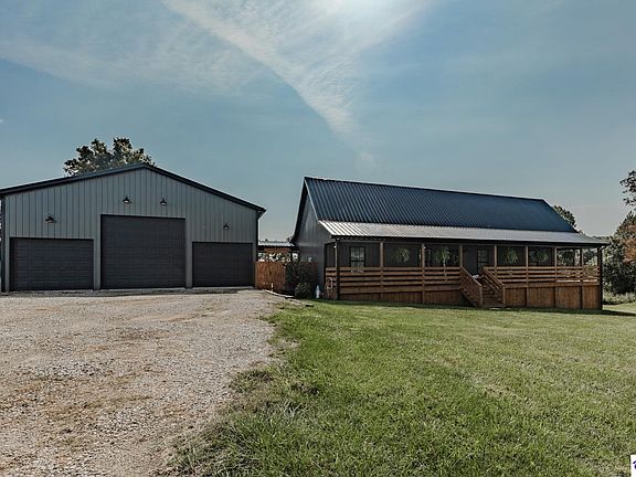 Discover the perfect blend of rustic charm and modern comfort in this beautiful barndominium situated on 6 scenic acres. The home welcomes you with an inviting wraparound porch, ideal for relaxing and enjoying peaceful country views. Inside, the open floor plan is highlighted by a cozy fireplace feature in the living area and farmhouse-inspired finishes throughout. The kitchen boasts a huge pantry, plenty of cabinetry, and a seamless flow for both daily living and entertaining. The spacious primary suite is a true retreat with a soaking tub, double vanities, and a walk-in shower. The loft area, approximately 360 square feet, offers potential for a third bedroom, office, or creative space. The property also features a large detached garage with three bays, including one oversized door perfect for RV storage, plus plenty of room for vehicles, tools, or hobbies, & extra storage/room above the closet space that could potentially be finished out to be another bedroom with pull down steps. With its acreage, flexible layout, and thoughtful design, this property is ideal for those seeking space, functionality, and farmhouse charm. Be sure to take the virtual tour and schedule your showing today!