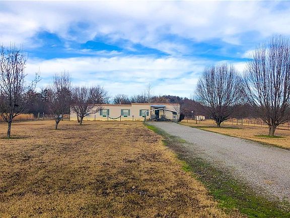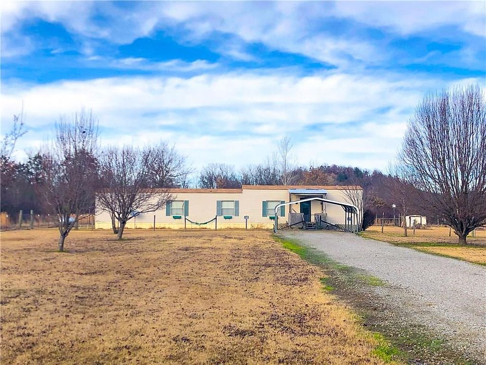 **SOLD AS IS/WHERE IS** Singlewide on beautiful country lot, with the driveway lined with mature Redbud trees. Located outside of Spiro but only minutes away from the main HWY. This property offers two storage buildings, one wired with electricity. Roof replaced in 2016, covered deck was placed in 2016. HVAC is one year old with a 3-year warranty, this system will very easily and quickly heat and cool your home. Come make this property yours, with some TLC this could be your country getaway. +/- 1.0 acre