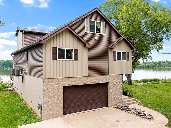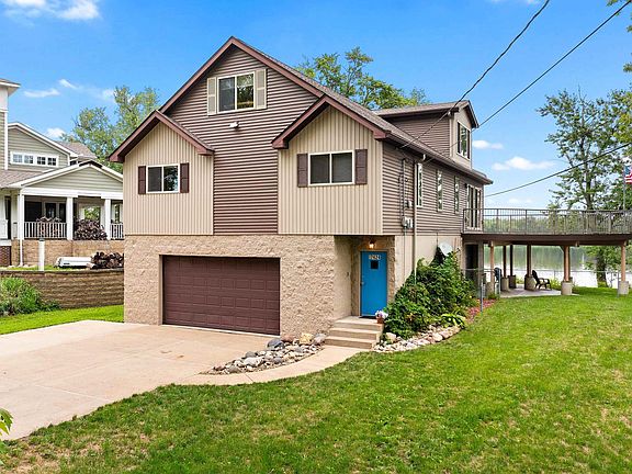 Custom 4-bedroom Horan quality-built home on the river. Enjoy these amazing views and living on the water! Open floorplan with an updated kitchen that has plenty of cabinets and storage and includes stainless steel appliances. The great room gas fireplace is a cozy focal point. You'll love the near panoramic view of the river with windows that let in lots of natural light. There are two bedrooms on the main floor with a full bath. The 2nd story features the primary bedroom with its own full bathroom and vaulted ceilings. The spacious second bedroom features an attached office for remote work or private study. This versatile layout offers flexibility for additional living space. The large outside composite deck and aluminum rails offer a great entertaining space. This home has its own beach frontage,an 8-foot seawall and deep water to bring in your cruiser. It also features a 30 foot deep 2 car garage, and an extra 30 ft deep 1 car garage to hold the kayaks and wave runners. This amazing home has truly been built for living on the water!