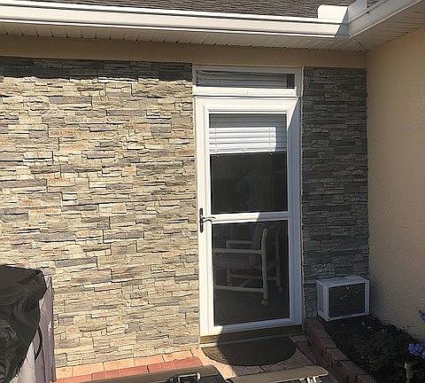 - Exterior Features: Door-Sliding Glass, Gutters/Downspouts, Lanai, Landscaped, Window-Bay
