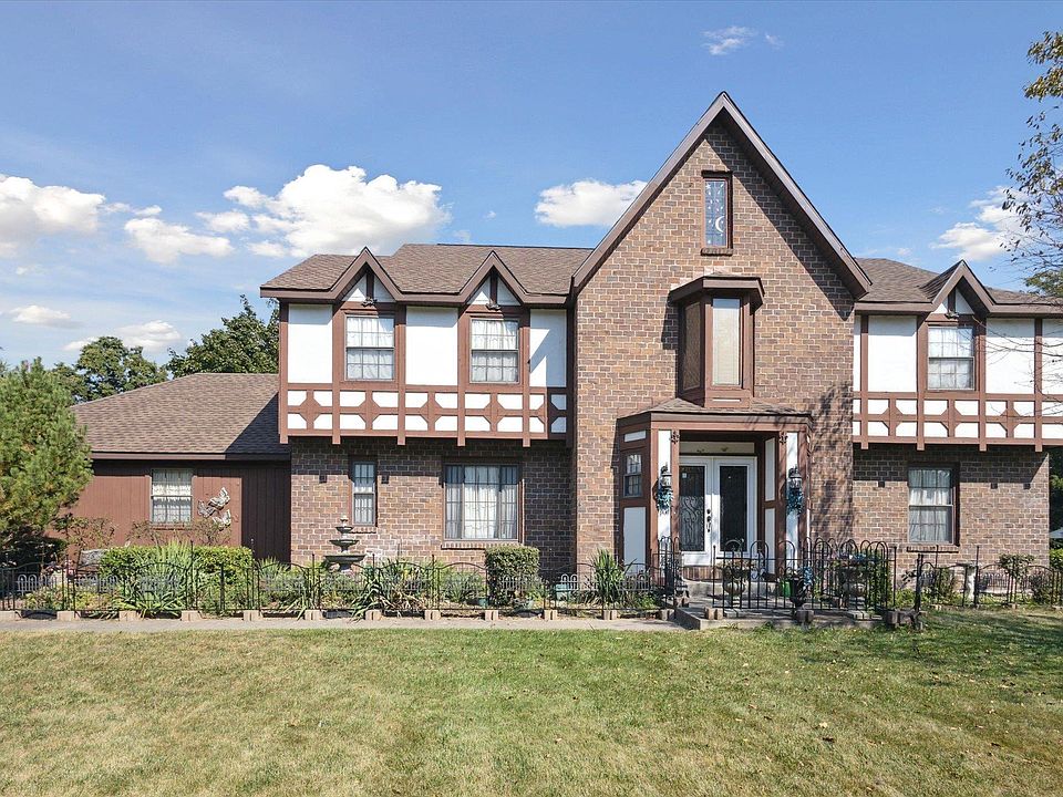 Come home to this magnificent Tudor Revival home in Granger’s desirable Knollwood West. This large four-bedroom home is accented by exquisite architecture and details throughout. You will love the exposed beams in the kitchen and two-story great room, the hardwood floors, and the double-sided fireplace. In addition to the large eat-in kitchen, the main level features a living room, den, great room with wet bar, formal dining, laundry, and a three-season room. All four bedrooms are upstairs, including the master suite with a luxurious en-suite bath. The finished basement adds space for entertaining and hobbies. The large backyard is a peaceful retreat with mature trees and a view of the golf course. Near shopping, dining, and the University of Notre Dame. Schedule your private showing today.