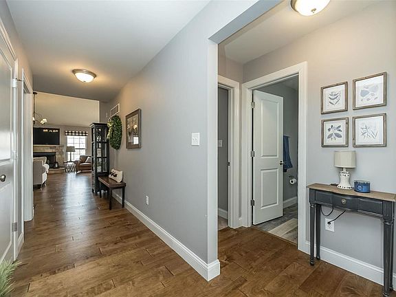 This picture perfect RANCH has the endless charm you've been looking for! Featuring a coveted 3 CAR GARAGE, 2 TIERED DECK & PATIO backing to peaceful WOODED common ground. Spacious divided bedrm plan offers 3 bdrms, 2 baths, vaulted ceilings, mn flr laundry & a walk-out ll w/endless potential. Huge great rm has a gas frplc w/beautiful stone surround, mantle & chandelier. Open flr plan flows effortlessly from gr to kit w/gorgeous counters & cabinets, soft-close drawers, center island, ss appls, pantry & brkfst rm w/slider to top deck. The primary suite is a true retreat, complete w/a cove ceiling, romantic boho lighting, walk-in closet & a spa-like bath w/double bowl vanity, soaking tub & sep shower. Updts include: ga door opener w/cameras, custom closet, lighting, window treatments, converted frplc to gas, added soft wtr sys, fresh paint + so much more. Neighborhood features a dog park, walking trails, picnic areas & a serene lake, all just minutes from the elementary school & library!