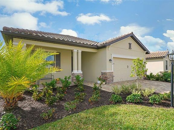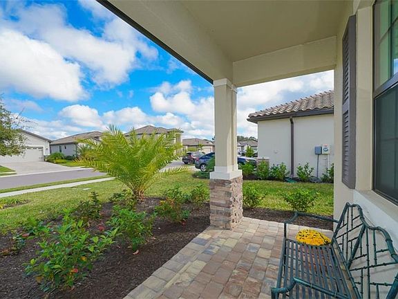 Behind the gates at Polo Run you will discover this better than new home offering open lake views! Owner's pride is reflected throughout offering an open concept home consisting of 3 bedroom and 3 full-baths. Sellers have upgraded this home with many upgrades including: stone backsplash walls in the kitchen, designer ceiling fans and light fixtures, plantation shutters, staggered tile floors in living areas, upgraded gray wood cabinetry (with some pull-out drawers) granite kitchen counters, large one level island with overhead pendant lighting and stainless steel appliances. The open great room flows into the formal dining room and screened lanai creating a wonderful setting for entertaining family and friends. Retreat in the owner's suite with two separate walk-in closets, private bath with large walk-in shower with tile walls, double vanity with separate sinks. Your guest will love the second ensuite with own private bathroom. The third bedroom could be used as an office and is in close proximity to the 3rd full bathroom. Other features not to be missed includes: Smart home technology, Ring doorbell, natural gas, stainless steel appliances, tile roof, pavered driveway and walkway, tray ceilings, extensive crown moldings, two car garage with storage areas, gutters, extensive landscaping, remote control blind, leaded glass from entry door, tankless gas water heater and more. Better than NEW with no builder's fee. Just move in and start enjoying the Florida lifestyle! Sellers are leasing solar panels at $24 per month. Sellers approximately electric bill is $55 per month! All of this in a gated resort-style community including tennis, heated pool, clubhouse, 24-hour fitness, yoga studio, bocce ball, basketball court, pickleball and a grill, playground, picnic area and dog park. Polo Run is centrally located and affords quick access to Lakewood Ranchâs A-rated schools, shopping, restaurants, UTC mall and more.