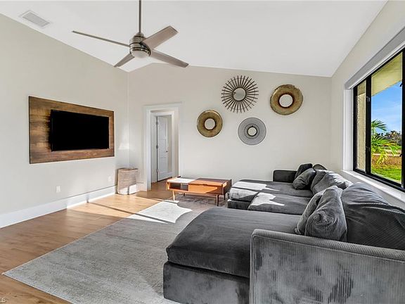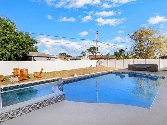 Come see this updated, TURNKEY home in San Carlos Park! This 3 BD, 2 BA home features a NEW roof, NEW water heater, NEW HVAC system & duct work, NEW electrical panel & surge protector, NEW interior doors, NEW flooring throughout, NEW washer & dryer, and fresh interior & exterior paint! The light & bright living area provides vaulted ceilings & flows into the dining area that boasts a modern light fixture, beautiful dining table & access to the backyard. Adjacent to the dining area sits the kitchen which features stainless steel appliances, custom backsplash & ample cabinet space. The owner’s suite is conveniently located on the opposite side of the home from the other bedrooms. It provides access to the backyard & has its own updated ensuite w/ a tiled, walk-in shower. 2 bedrooms & an updated full bath complete this charming home! The home provides your own backyard oasis w/ a pool, hot tub, fire pit & completely fenced in yard. The garage is also equipped w/ a full gym & storage system! With NO HOA fees, rules, or restrictions & just minutes from Gulf Coast Town Center, SWFL Intl Airport, Hertz Arena & Three Oaks Community Park, this home offers a little something for everyone.