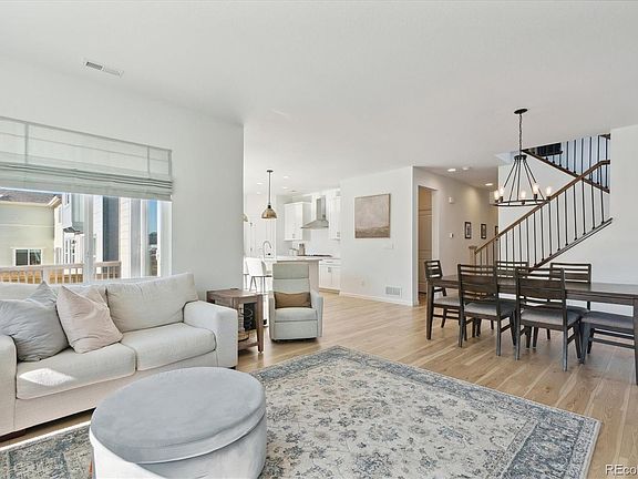 Experience the heart of the home with an island kitchen boasting stunning quartz countertops, state-of-the-art built-in appliances, and a spacious walk-in pantry. It seamlessly transitions into an airy gathering room and casual dining area, setting the stage for memorable moments. Enhance your lifestyle with expansive 8x12 sliding glass doors that lead to an enticing outdoor living space and deck—a perfect sanctuary for entertaining guests or simply enjoying serene outdoor comfort. Room to run with artifical turf and fenced yard ready for all your entertaining, Ascend to the second story, where a versatile loft awaits, ideal for a vibrant playroom or captivating media room. Feel the luxury of the generously sized owner's suite, offering a walk-in closet and a private bath accented with dual sinks and a walk-in shower. Additional features include two cozy secondary bedrooms, a full bath, and a convenient second-floor laundry room, all designed for modern living. Trails at Crowfoot enriches your lifestyle with a newer community offering inviting parks, a refreshing pool, and meandering walking paths, each meticulously designed to captivate your senses. Easy access to Parker or Castle Castle Rock, you will have the best of both, location location location! It's everything! Don't miss the opportunity to make this exceptional home yours—visit today and imagine the possibilities!