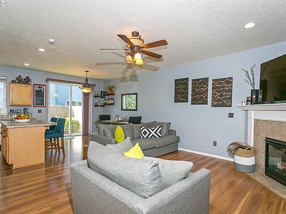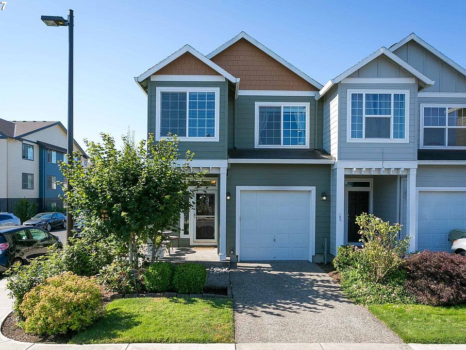 OPEN 7/15 & 7/16 1-3. Remodeled corner unit townhome only minutes from Nike! Beautiful updates throughout- high ceilings, new carpet, new paint, kitchen w/tile countertops, ss appliances, laminate wood floors, and island w/eat bar. Living w/gas fireplace. Sliding door to adorable back patio w/gate to neighborhood. Huge bedrooms! Master suite w/vaulted ceilings, spacious WIC and double vanity. Close to parks, shopping, MAX, schools!
