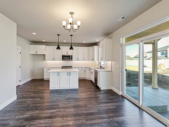 Exterior Features: Stone accents across front exterior and columns, Shake and board and batten accents, Large covered front porch, Sidelight and transom window at front door, Enlarged 24' x 12' concrete back patio with 16' x 10' covered and a gas stub for barbecue. Main Living Space Features: Dual zone HVAC system and gas tankless water heater, 9' ceilings throughout main floor, Corner gas fireplace with stone accents to wood beam mantle at family room with wiring for wall mount TV above, Double glass and grids door entry and coffer ceiling in office, Coffer ceiling in family room, Upper cabinets over washer and dryer location and sink and base cabinet at laundry, Open loft area. Kitchen Features: 42" upper cabinets with crown molding, Under cabinet lighting, Large island with 9" eating bar overhang, Large walk-in corner pantry. Master Suite Features: Large walk-in closet, Double sinks, Garden bathtub with single row tile backsplash, 5' x 3' fiberglass pan with tile to ceiling walls, 14" x 18" soap niche and "L" shaped frameless glass door. Guest Bathroom(s) Features: Double sinks at guest bathroom