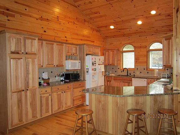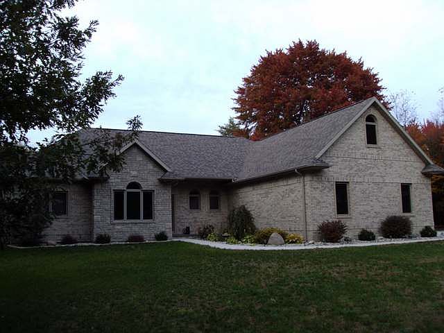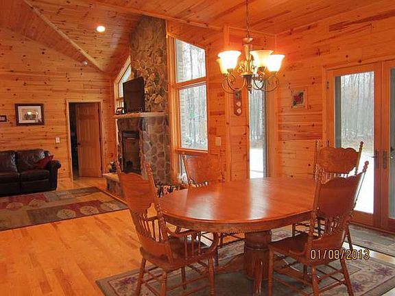 MIDLAND COUNTRY LIVING YOUR CUSTOM BUILT DREAM HOME. Just minutes from Midland. Nicely wooded6.5 acres. Home sits back from road for privacy. Hardwood floors throughout with open floor plan. Cathedral ceilings with knotty pine.Knotty pine walls some drywall. Gas log fireplace in livingroom with large windows for view of woods and wildlife. Ceramic tile baths and master bath has walkin ceramic shower. Large walkin closet. Den off master bedroom for extra storage or office. Rest of bedrooms off livingroom with 2 having a Jack & Jill split bathroom with full tub/shower. Familyroom is upstairs above garage with stairway off kitchen. Kitchen has granite countertops and large walkin pantry. Like new appliances. Home only 3 years old. Hickory cabinets. 3+ attached garage. Large entry way leads into ceramic tile laundry room. Very well insulated brick home. 48x62 Block Polebarn/Garage with storage upstairs above 16x48 heated man cave with bath. 2-14x16 doors&8x10.Generator hookup.