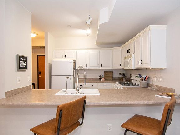 Enjoy the beautiful wooded landscape surrounding this well maintained 2 bedroom, 2 bath condo! This conveniently located first floor condo is just minutes from the University, UIHC, I-80, parks & trails. This cozy open plan condo features white kitchen cabinetry w/ breakfast bar, luxury vinyl plank flooring, corner gas fireplace, and beautiful large windows allowing for lovely views & natural light. The huge primary bedroom includes an on-suite bath & walk-in closet w/ laundry (washer & dryer stay) located right around the corner. The additional bedroom & bath is great for guests or allows plenty of space to work from home. The private deck extends your living & entertaining space and offers beautiful wooded views and access from both the living area & primary bedroom. New furnace, A/C & dishwasher in 2022, plus the building roof was replaced in 2019, making this condo truly move-in ready! The building includes an underground parking garage w/ reserved parking space #14, shared locked storage unit #1, & elevator access. This home just has so much to offer!