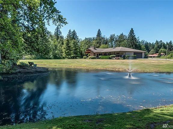 A story book setting 3 bdrms 3 bthrms 2766sqft single level home on 5.82 private acres. Generously sized rms w/a flowing floor plan, heat pump & amazing quality. Large kitchen overlooking the stocked pond & back yard, huge laundry rm, a great room w/wet bar & fireplace, living rm, dining rm & breakfast eating area. A wraparound covered porch overlooking the tree lined yard, pond & fountain. Attached 2 car garage + a heated 26x54 shop w/220 power, RV pking & a circular driveway. Easy I-5 access.