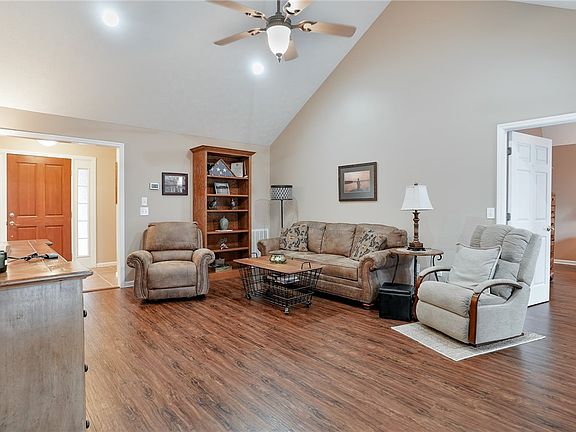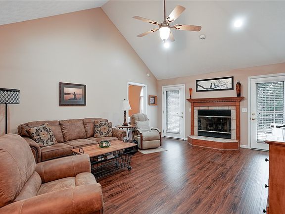 - Description: Vaulted ceiling with ceiling fan & fireplace,Flooring: Wood