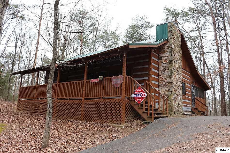 BACK ON MARKET with almost $20,000 price reduction! Immediate income! Two story fully furnished log cabin in the Smoky Mountains! Sleeps 10 per rental company! All gaming equipment and huge hot tub are also included. Only minutes from the Pigeon Forge Parkway where family fun abounds! Two bedrooms on main and two upstairs -- a full bath on each level -- one with jetted tub. Masonry gas log fireplace and hearth cover an entire living room wall. Easy access paved road with surfaced driveway and parking.