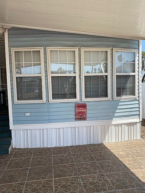 HOA dues are only $220. a year.2 Bedroom and 2 full bath park model 1999 Ceda available at 1743 Santa Rosa Ave, Fiesta Village a 55 plus community for active adults. Comes partial furnished, electric heat and air conditioning Built in water softener attached to the kitchen. in the ft laundry room Sits on a large lot that is mostly fenced in at a dead end street so it is nice and quiet without a lot of traffic. Large wooden deck that wraps around the front of the house. canopy parking for 2 cars or more.When you buy in our park you also own the land that the park model sits on. The HOA fees are only $220.00 a year. Nice sized utility building 10 x 14 that a golf cart will easily fit in. Bed room #1. 11x8.4 new queen pillow top bed, you can replace with a king blue carpet 2 night stands 2 lamps. Bed room #2./ office/ living area 12x13.8 There is no bed in this room, Tan Berber carpet, Tan love seat, 2 end tables many internet connections, Dish TV stand, Bath room #1. 6.8x4 Handicap accessible walk in shower and taller toilet Bath room # 2. 5x7 also Handicap accessible shower and taller toilet Laundry room 6.6x5 with Full size washer and dryer, shelving and clothes bars Kitchen 11.6x6 full size electric stove, Standard size refrigerator, water soften, 5 ft L cove with table and 2 chairs Living room 11.6x14.8 with 2 end tables and lamps. sofa and chair Some of the Amenities include Large outdoor swimming pool, Shuffleboard, Pickle Ball, Free High-speed Internet/WIFI in the hall, Pool Room with 3 tables, Large Kitchen Many Planned Social Events, Dancing, Bands and Jams Bingo, Horse Races, Quilting, Sewing, Card Games, Dominoes This is only few of many activities