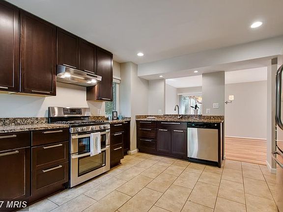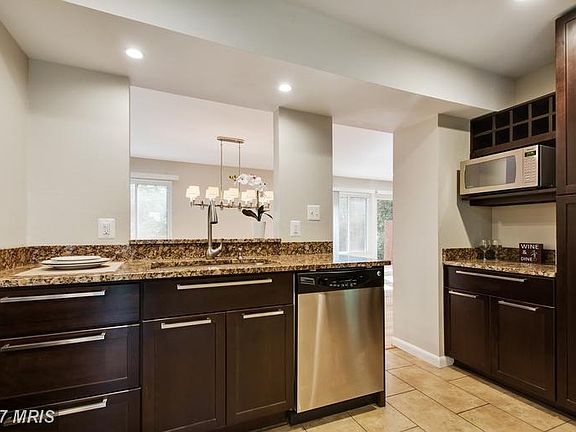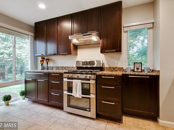 End unit, 3 level brick home, largest model available in neighborhood. Lovingly maintained. Many recent updates, including kitchen with appliances, granite, bathrooms, and refinished gleaming hardwood floors on both upper levels. Massive deck for outside entertaining that backs to trees and rec. area. Convenient location to Reston Town center and Metro. Carport with storage