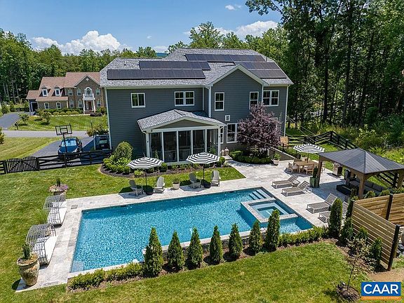 This stunning Whittington home, on 1.23 privately situated acres, is conveniently located just 12 minutes from UVA hospital and C’ville’s Downtown Mall, and less than 10 minutes from shopping, movie theater, restaurants and I64. Chef’s dream kitchen, features an island, quartz countertops, Electrolux appliances, walk-in pantry, pull-out cabinet drawers, custom lighting, and opens to a generous screen porch that leads to the pool area, for indoor/outdoor entertaining! Open concept first floor features 9’ ceilings, a two-sided fireplace, a bedroom with ensuite, a grand dining room, a light-filled office w/ French glass doors, a powder room, a butler’s pantry and a mudroom. 2nd floor, regal primary suite, w/sitting area, spacious ensuite w/separate vanities, oversized glass shower, soaking tub and a magnificent walk-in closet/dressing room awaits. Three additional bedrooms (one w/ensuite, and two w/a Jack & Jill bath), a sitting area and the laundry room complete the second floor! The basement features a sixth bedroom, rec room, wet bar, and full bath with access to the back yard. Enjoy a luxury vacation everyday in this Energy efficient, Pearl Certified home, w/tankless water heater and solar panels! 7/30 Open House Cancelled.