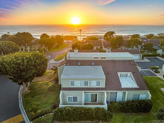 Awe-inspiring ocean and sunset views in a secure, manned gated community. Incredible private beach access allows you to enjoy uncrowded cliffside beaches next to some of the most popular surf breaks in Southern California. This elegant 4-bedroom, 3-bathroom residence comes equipped with versatile loft/office space that can be tailored to your lifestyle. Encompassing an impressive 1,934 square feet, the open floor plan welcomes spacious and comfortable living. On the main level you'll find two bedrooms and a full bath, adding convenience and versatility to the home. Entertain on your extra-large wrap-around deck with panoramic 180-degree sunset views. This deck provides the perfect space for outdoor gatherings, relaxation, and savoring the coastal breeze. Situated on a large corner lot, the property is nicely landscaped which offers a privacy factor with no neighbors on the left side of the property. The property's grounds are a sanctuary, boasting meticulously manicured lawns and expansive greenbelts adorned with mature trees all set along a serene, private lane. Numerous neighborhood amenities include two inviting pools, a rejuvenating Jacuzzi, four well-lit tennis courts, and a welcoming clubhouse where you can socialize with friends and neighbors. Whether you seek relaxation or recreation, this community offers it all. Embrace a coastal lifestyle that seamlessly combines elegance and convenience and make this your new dream residence. Conveniently located on Coast Hwy 101; only minutes to I-5, downtown Encinitas, and popular beaches, like Beacons and Ponto Beach!