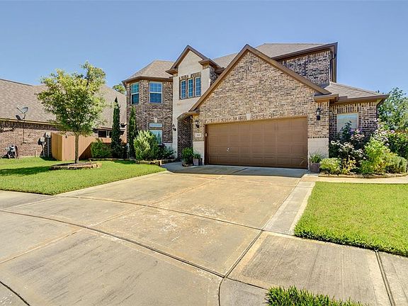 Stunning two story home with plenty of custom details throughout. A GORGEOUS front entry welcomes you as you pull up to a quiet and spacious CUL DE SAC. Upon entering the home you are greeted by a bright floor plan, Large formal dining, study w/tall FRENCH DOORS. LOTS OF WINDOWS let in natural light. Kitchen has GRANITE, an oversized island, BAR SEATING, & BREAKFAST area, and plenty of CABINET SPACE with walk in pantry. LARGE private master suite with tray ceiling, en suite with DOUBLE SINKS, separate walk-in shower, and large walk-in closets equipped with plenty of shelves and access to the laundry room. Upstairs has 3 bedrooms, game room with TRAY CEILING, and a HUGE MEDIA ROOM with built in storage space. The PRIVATE oversized backyard boast a partially covered extended patio that backs up to a BEAUTIFUL GREEN SPACE. Close to great schools, restaurants & lots of HARMONY neighborhood amenities.15 mins to Exxon & the Woodlands, 20 minutes to the airport, 35 mins to Minute Maid Park.