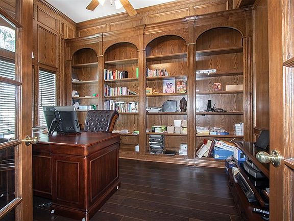 Beautiful Bob Cabaniss home waiting for you. Hardwood floors great you in the entry, leading you to a wood paneled study w/ French doors & built ins, wood floors continue through most of the downstairs. Large Dining room w/ high ceilings & double crown molding. Large island kitchen has an abundance of cabinets, & is open to the breakfast area and Den. Fireplace, Built-ins & raised ceilings in the Den. Formal Living Room w/ a wall of windows & high ceilings. Large Master bedroom has double tiered vaulted ceiling & a fabulous owners retreat. Double sinks, separate tub, oversized shower & 2 walk-in closets. Large secondary bedrooms with wood flooring in all. Jack & Jill bath & one bath exclusive to one of the secondary bedrooms. Gameroom/extra room upstairs. Balcony overlooking a beautiful backyard large enough for a pool. Large concrete pad poured behind garage - great for sports. 2" wood blinds. 3 car garage with a porte cache. Split stair case in front, back stairs off the kitchen.