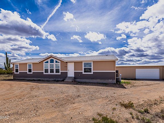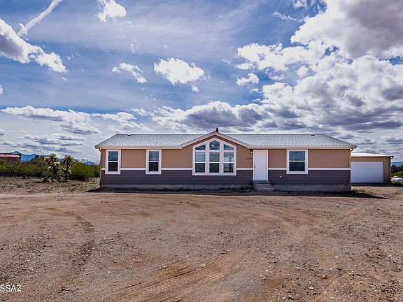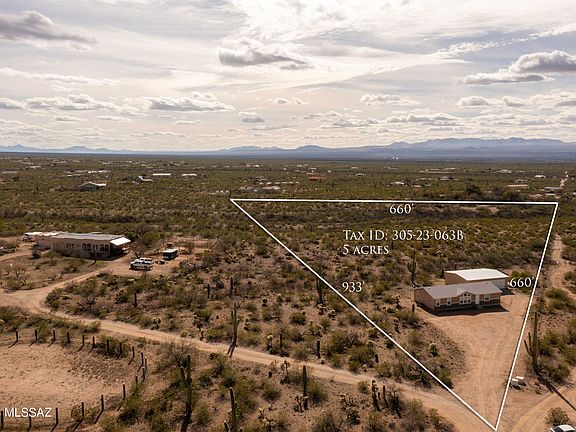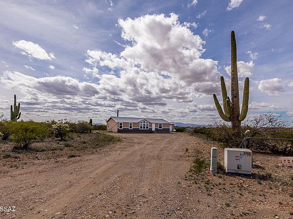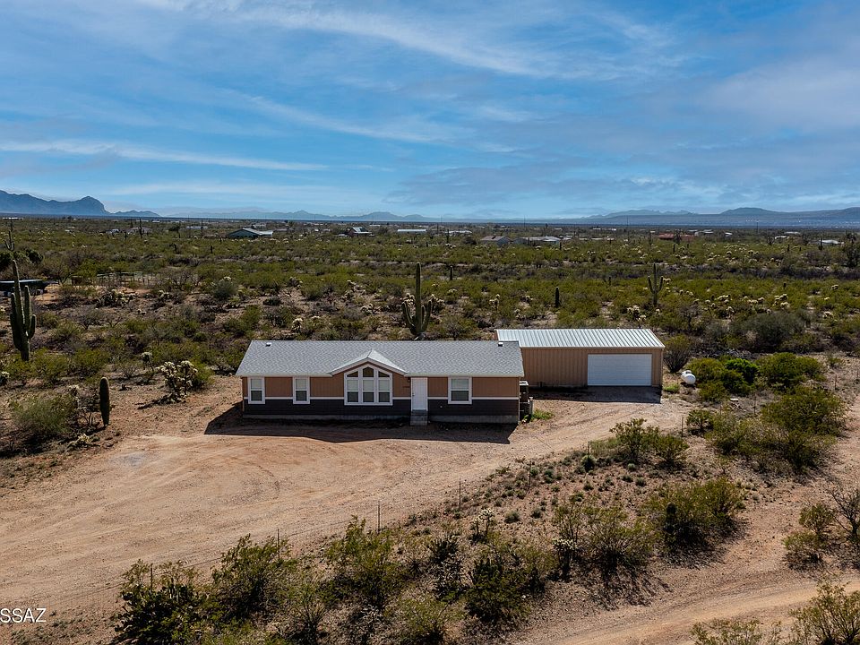Enjoy desert serenity with captivating saguaro & 360 degree mountain views on 5 ACRES! The 3 bedroom, 2 bath, 2018 built home has an open floor plan and all the modern finishes! And arguably, best of all... AN ENORMOUS 1200 Square Foot GARAGE/WORKSHOP!!! The home boasts tall ceilings, open and split floor plan, plenty of windows for natural light, stainless steel appliances, built-in buffet with glass view upper cabinetry, modern light fixtures, window coverings convey, and huge laundry room with built-in upper & lower cabinetry. Owner's suite is extremely spacious with 2 closets, a gigantic bath, complete with a walk-in shower and extra storage cabinets! Both guest rooms have walk-in closets too. This home truly feels as though no one has lived in it! Visit today and WATCH the VIDEO!!