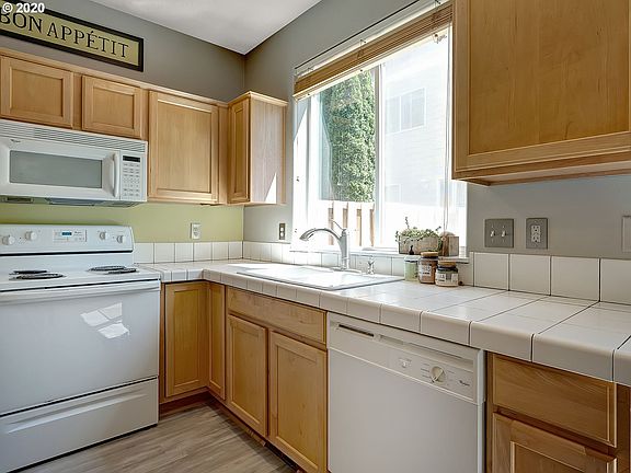 "Anthropologie chic" Beaverton townhouse conveniently located to Nike, Intel, Costco, the MAX, dining and parks. Open greatroom floor plan with new extra durable flooring throughout main level. Sizable kitchen with tiled island. Vaulted master suite plus walk in closet and dual sinks. Other features include gas fireplace, air conditioning, upper level laundry room, ample storage and mature flower lined fenced patio. Fridge and washer/dryer included. Must see! OPEN THURSDAY 7/16 4-6pm