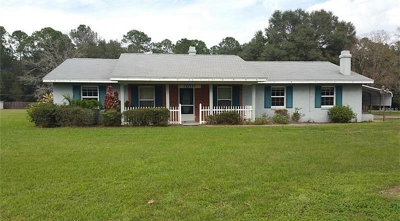 *BANK-Owned* 3BR, 2BA Block home with in-ground Swimming Pool and Screened Lanai. This unique single family residence sits on a full acre lot with no HOA!! Interior of home provides a Galley Kitchen with all appliances in place and both the Living and Family Rooms have Fireplaces. The Living Room and Formal Dining Room each have French Doors leading to the Screened Pool Deck and Entertaining Area. The large lot offers a 24X20, 2-Car Carport with Storage and is wired with electricity. The back yard also has two additional Storage Sheds. This secluded street ending in a cul-de-sac may just be the country setting you and your family are searching for.
