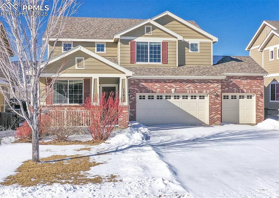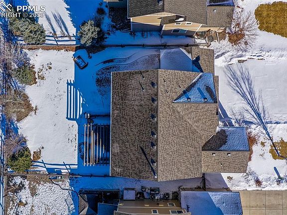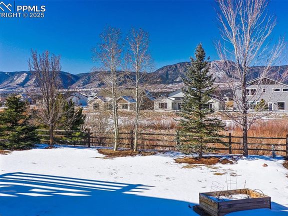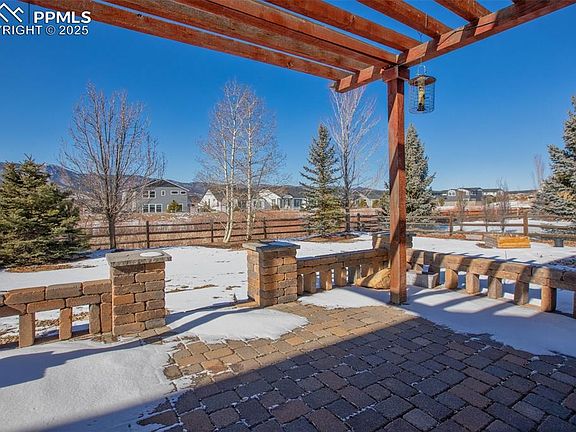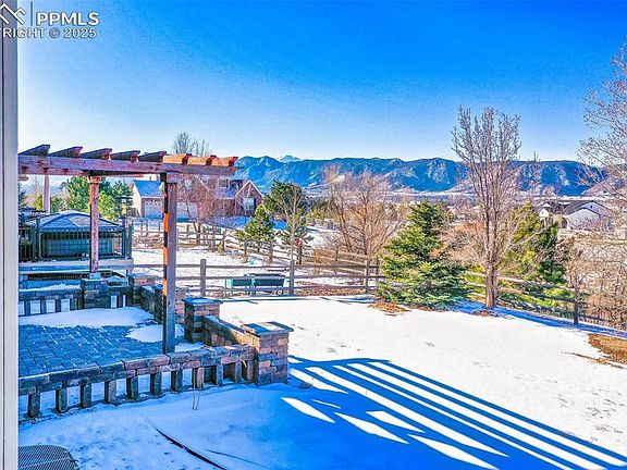 **Stunning 4-Bedroom Home with Office & Breathtaking Mountain Views** This exceptional 4-bedroom, 2.5-bathroom two-story home features an office and an oversized attached 3-car garage. Enjoy extraordinary mountain views with a trail system directly behind the home—no future development allowed. The spacious kitchen boasts 42-inch maple-style cabinets, quartz countertops, a gas range, a deep stainless steel sink, and an island, all complemented by solid wood flooring. The eat-in kitchen opens to the family room, which features a gas fireplace, built-in bookshelves, and a TV niche with cable access. Also on the main level you'll find a spacious living room, office, powder room with laundry. Washer and dryer are included. Step outside to an expanded flagstone patio with a pergola, perfect for entertaining. The fenced backyard offers privacy, while the side gate provides easy access. The upper level includes four bedrooms and 2 baths. The spacious master bedroom features a walk-in closet and adjoining 5 piece bathroom. Bedrooms 2 and 3 feature amazing mountain views. The unfinished basement offers a rough-in for a future bathroom and a sump pump. Additional highlights include central air, a 2022 roof replacement, a built-in speaker system (hookup unknown), and window coverings throughout. Located in the Village Center at Woodmoor subdivision with easy access to the interstate, shopping, schools, and hiking/biking trails. Quick commute to military bases, Denver, and downtown Colorado Springs. Don't miss this opportunity to own a sparkling clean home that combines comfort, function, and incredible views!