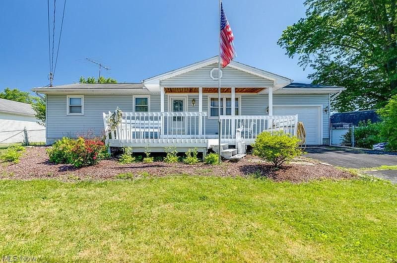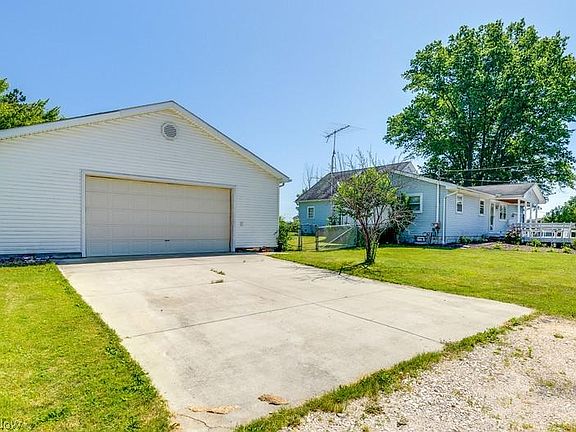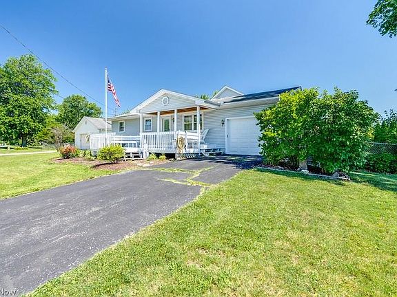 Welcome to this stunning beach house themed 4 bedroom, 3 bath fully furnished lake view home in Lake Milton! The easy maintenance landscaping greets you as you access the covered front deck with built in seating and a partially covered porch perfect for a swing to kick back on. You can see Lake Milton perfectly. The living room has bamboo flooring with a natural light. The open concept kitchen and living room features Granite countertops, tiled floor, tile backsplash and so much cupboard space. Extra seating at the bar open to the family room with exposed tile around the electric fireplace with a mantle over it. Recessed lighting and room for a dining room great for summer gatherings. Stairs lead to the loft with a window perfect for an office or bedding. The master suite hosts dual closets with a third closet perfect for seasonal attire or extra beddings. In the master bath you will find the walk-in shower with a large soaking tub, and a closet for towels. Down the hall you will find three bedrooms with bamboo flooring and another full bath! A fifth potential bedroom is in the basement and additional full bath. The house also has an attached one car garage, detached 40'x32' three car garage. A back deck with a firepit ring along with a handicap accessible ramp. All sitting on three lots! Across the street you will find your private boat dock with a lift! This dream beach styled home is just waiting for a new owner.