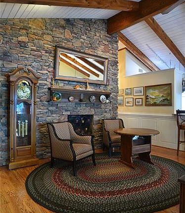 Gorgeous Waterfront Home with Incredible View of the Main Channel. Exceptionally beautiful Great Room with Cathedral Ceiling with Exposed Beams, Fireplace and Open Kitchen. Deck and large patio overlooking the lake. Master on the Main. Large finished basement with guest room, rec room and bonus rooms. Lots of space for entertaining and guests! 2-car garage. Nice size lot! Boathouse with great water depth. Wonderful location!