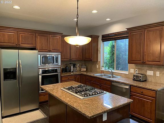 Fabulous and beautiful home now for rent in quiet, upscale neighborhood! Almost 2700 sq ft and five spacious bedrooms, three bathrooms and tons of light from every room. Open living concept with fabulous kitchen complete with gas appliances, granite countertops and access to the oversized garage. This home lives large and there is room for everyone! Spacious primary bedroom with French doors and private bath with jet tub, shower and walk in closet. Brand new carpet, paint and immaculately clean. Fully fenced backyard and plenty of parking in long driveway and garage. Serene green space view from windows and backyard. Within walking distance (.1 miles) to King City Community Park with basketball courts, soccer field, tennis courts, playground and river trail. A quick drive to Hillsboro, Beaverton and Portland. This is a 12 month lease with plenty of opportunity to extend. Pets acceptable with refundable pet deposit. This home is ready to rent now! Renter responsible for all utilities and yard maintenance. Pets allowed with pet deposit.