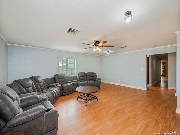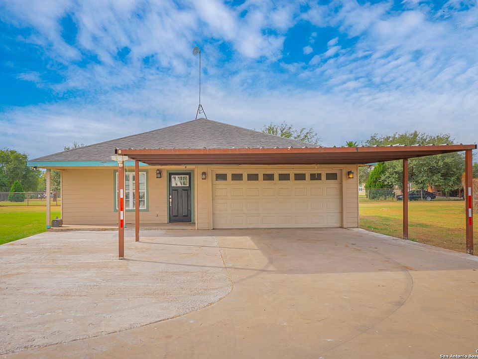 Three bedroom, 2 bath move in ready with 2 car carport on 5 acres! Fully fenced with plenty of room for boat or RV parking and more! Laminate and tile flooring, eat-in kitchen and a spacious owner's retreat with jetted tub, custom vanity and walk-in shower. Large bonus room makes a great second living area or media room. Just off IH35 with easy access to San Antonio.