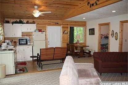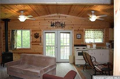 Up north getaway that features 2 Bedroom, Bath room roughed in, full kitchen, gas FP, french patio doors lead you to the large front deck. All of this privately tucked in on 3.68 acres. Close to lakes and only 1/2 mile to 40 acres of State land.
