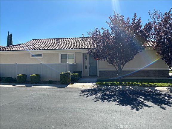 JUST REDUCED! The best value in Solera at Oak Valley Greens. Beautiful Community, so many amenities, low HOA’s! Located on an interior corner lot, this Mediterranean style, 2 bedroom, 2 bath home with an office is perfect for an easy, low maintenance lifestyle. In the kitchen features Corian countertops, cabinetry with convenient pull-out shelving, a lazy susan, a built-in microwave, dishwasher and tile flooring. The laundry room is located off the kitchen providing even more storage and direct access to the two car garage. The kitchen is open to the main entertaining area and that opens onto the private back patio and back yard. There are double pane windows and recessed lighting throughout. The spacious primary suite has windows to the enclosed back yard and the en-suite primary bath has double sinks and a walk-in shower. Down the main hall, to the right of the front entry is an office/den/hobby room. At the end of the hall, the secondary bedroom and guest full bath…A great layout. Solera is a beautifully maintained and lovely 55+community with so many amenities! There’s a clubhouse with a large multi-purpose room, kitchen, billiard room, library and a full gym. A beautiful pool area with a salt water pool, just off the clubhouse, pickle ball and tennis courts, bocce ball courts. Beautiful greenbelts and lovely mountain views. Oak Valley Golf Course borders Solera and residents are offered special rates.