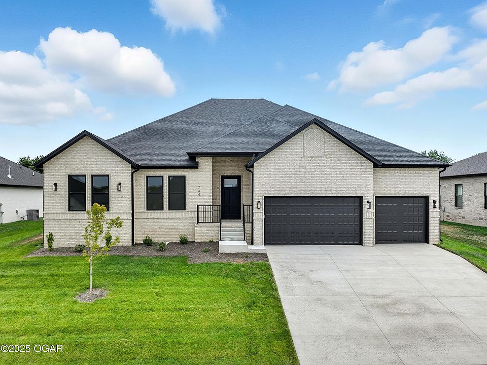 Welcome to this masterfully crafted new construction home by Magda Enterprises, where timeless design and modern comfort come together in the heart of the Ozark School District. From its stately full brick exterior to its thoughtfully curated interior finishes, every detail of this residence has been designed to impress. Inside, the open-concept living space is anchored by a custom-designed fireplace, creating both a focal point and a warm gathering place. The seamless flow leads into a gourmet kitchen that combines style and function with quartz countertops, a coffee bar area, walk-in pantry, and premium soft-close cabinetry designed by Woodhouse Cabinetry. A full suite of appliances completes this culinary haven, making it ready for both quiet mornings and lively entertaining. Throughout the home, engineered hardwood flooring from Missouri Tile adds richness and durability, while expansive windows invite natural light into every room. The four spacious bedrooms provide serene retreats, including a private owner's suite with spa-inspired finishes designed for relaxation. Step outside and enjoy the spacious backyard, where a built-in irrigation system ensures effortless upkeep, leaving more time to savor your surroundings. A 3-car garage offers convenience and ample storage for today's lifestyle. This is more than a home—it's a statement of quality, comfort, and enduring beauty.