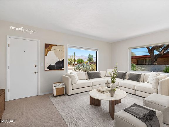 Immaculate, updated bungalow with charming curb appeal in the heart of Samos! This clean, move in ready home features a newer HVAC system, updated bathroom, new carpeting, and has been lovingly maintained. Two bedrooms plus a bonus room with plenty of shelving and laundry room with washer/dryer and extra storage. Fully walled backyard with mature plantings, 2 car carport with additional storage space. There is a driveway in the front of the home that could accommodate up to 2 additional vehicles. Generous mountain views from the living room and primary! All within close distance to U of A, Trader Joe's, some of Tucson's best local restaurants and coffee shops, and close to the Mountain Ave bike path! Floor plan available.