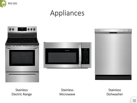 - Included: Dishwasher, Disposal, Microwave, Double Oven, Electric Oven, Electric Range