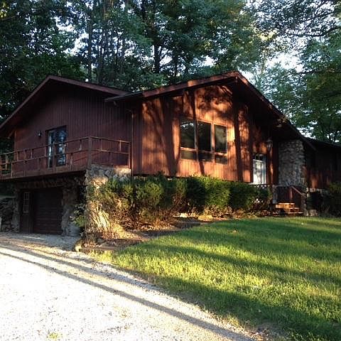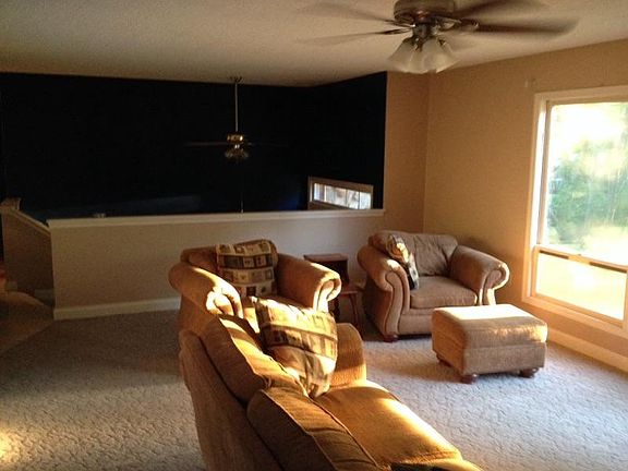 Large 3 bedroom, 2.5 bath home on 1.865 acres. This home has a full, finished basement with a 2 car attached garage. There is an eat-in kitchen with walk-out balcony. There is a half bath and laundry room in the basement. This home has a lot of space! New roof. Walk-out balcony off of Master bedroom. Renter responsible for all utilities and yard care. No smoking. No pets. Partial furnishings available if needed: Living room suite, 2 end tables, 1 queen bed, china hutch and two wood tables with 4 wooden benches.