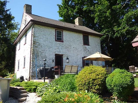 Bring your horses and step back in time in this 18th century stone home secluded among 7.75 acres of shade trees and pasture land. Modern kitchen and baths mix seamlessly with the elegance of this historic homestead. Original oak floors, turned balluster, paneled soffits. Barn, stable, and riding ring have water and electric. Move in ready for you and your horses. Home warranty included.
