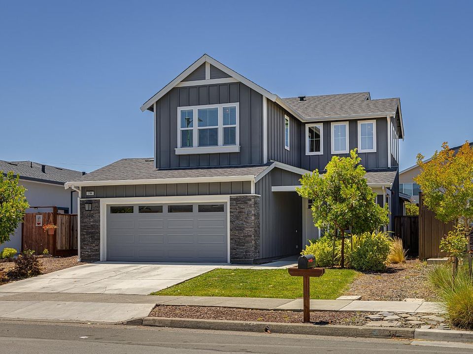Welcome to this gorgeous, stylish + nearly new Coffey Park gem with so much to love. Built in 2020, this four bedroom and three + a half bathroom home has an open concept floorplan with high ceilings + tons of natural light throughout. An always ideal feature of one guest bedroom with ensuite bath located on the main level gives an abundance of flexibility for guests, playroom, in-law suite, and more. Upstairs you'll find the primary bedroom + two additional guest rooms. The bright, open, and spacious chef's kitchen features a six burner stove, beautiful tile backsplash, white shaker cabinets + an oversized center island perfect for cooking, entertaining + enjoying casual meals. Extra-large side by side sliders off the kitchen adds incredible natural light and brings the stunning outdoors in. Both yards feature lush landscaping with so much potential for outdoor entertaining, as-is, or with the addition of a pool - plenty of space for that, too! Bonus features include a tankless hot water heater, air conditioning, and on-trend finishes throughout, and in close proximity to parks, restaurants + the Santa Rosa Airport. This home has all the charm you desire + all the amenities you need - come take a look!