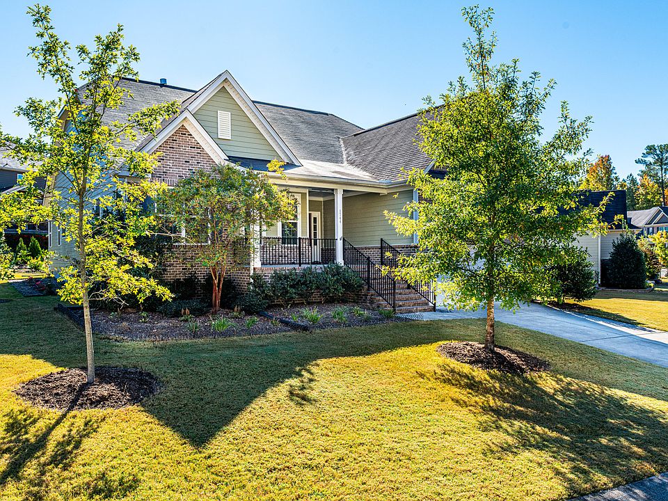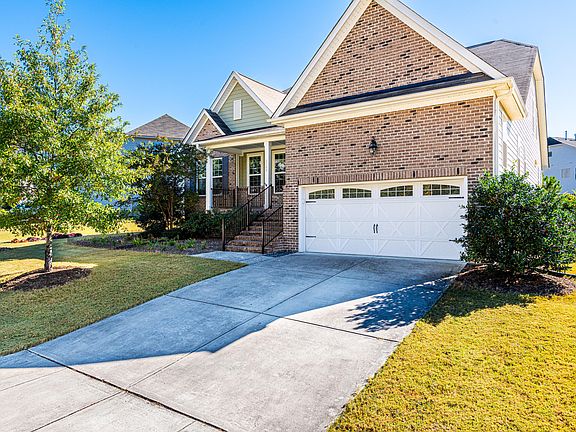 Hard to-come-by floor plan with all the things you need on one floor, think ranch home, but as a bonus upstairs you have another bedroom, a large flex room & walk-in storage! Even better you won't feel cramped with more than adequate square footage on the main floor. You'll appreciate the cooks kitchen with white cabinets, granite countertops, tile backsplash, a working island, loads of cabinet space, a gas cooktop, and your favorite stainless appliances! Share many meals in the dining room with plenty of that NC sunshine. You can be creative with the layout in the family room as you have a ton of space, the fireplace is the highlight with upgraded stone surround. The primary suite is situated in the rear of the house for privacy accented by a trey ceiling and a bath to swoon over! Dual vanities with granite counters, soaking tub, separate shower plus a walk-in closet. Designer tile choices in large format finish the space! The other two guest rooms offer you plenty of opportunities depending on your needs! As we head upstairs, envision a lovely suite for guests, a teenager would be in heaven, and seriously the largest bonus room with lots of creative uses. And for additional storage, you will appreciate the walk-in attic. For our outdoor enthusiasts, you'll enjoy many hours on your front or back porch, both are covered and the back porch is screened. You also have easy access to a great trail system, the greenway is right across the street and the neighborhood pool is right around the corner. The utility room is a great stash area for all the things when entering through the garage plus you have an abundant pantry! Low maintenance exterior with brick front, fiber cement & aluminum railings. Well-maintained home with neutral decor and move-in ready.