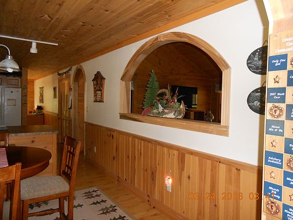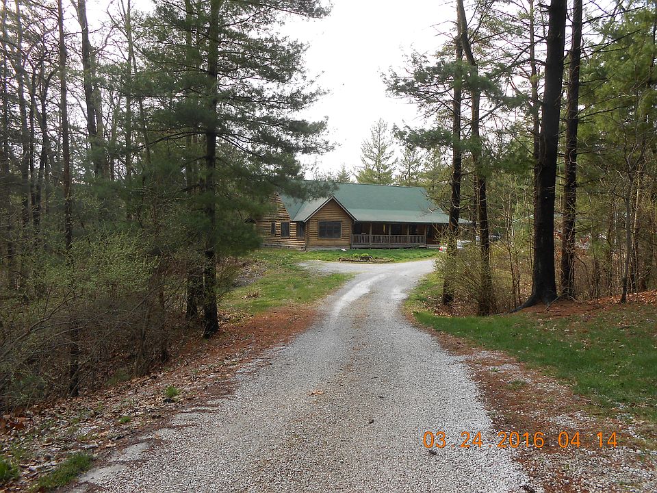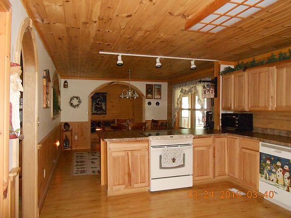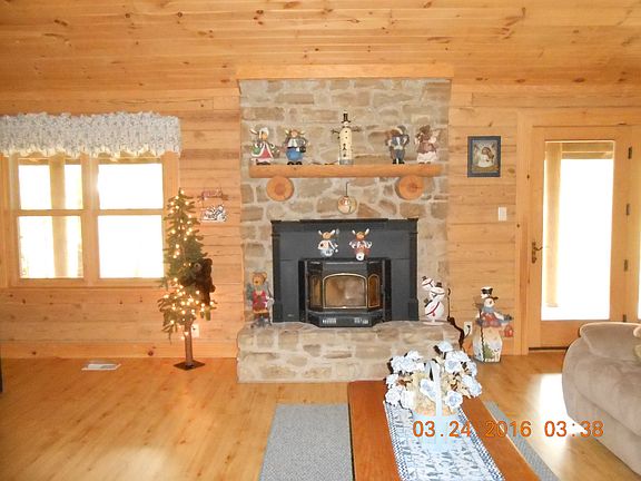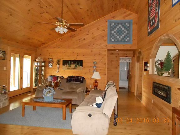 Stunning Log Home on 4.70 acres. Secluded on a 25 acres lake with access to a 55 acre lake. Gorgeous stone fireplace, Beautiful kitchen. Formal dining room used as an office now. Could easily be another bedroom. Covered front and back porch overlooking lake. 25x40 and 12x20 pole barns. Come and enjoy nature!