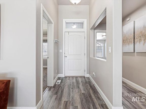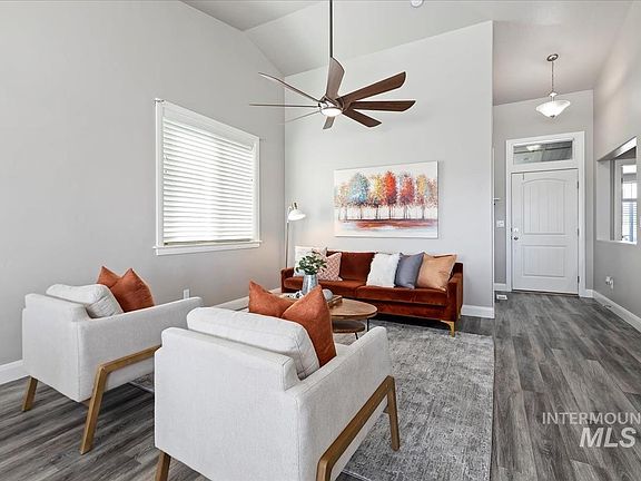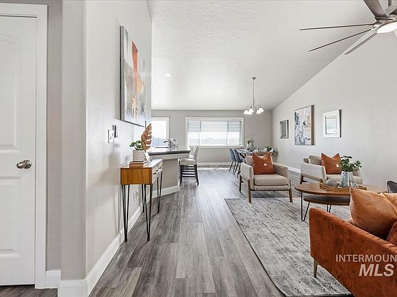Terrific single level in popular Sterling Ranch! This bright and cheery layout offers open living areas with vaulted ceilings, modern design elements and a flexible 4 bedrooms or 3 bedrooms + office option. Gourmet kitchen, solid surfaces, and stainless appliances. East-facing and roomy backyard with views of the Boise Front. Convenient retail shopping and dining options are nearby, and the wonderful community pool, park and playground amenities are just down the street. New carpet! This one's a gem - representing hard-to-find value in today’s marketplace. Ready for immediate occupancy.