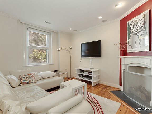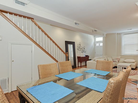 Available Aug 09, 2020. - This renovated 2 bedroom, 2.5 bathroom Dupont rowhouse offers a large roof deck with views and private rear parking for one car (sedan size or smaller). The first floor has a spacious living room with fireplace, a dining room, half bath, and kitchen. The bedrooms, full bath, laundry and roof deck access are on the second floor. Fantastic location, within a couple blocks of shopping, groceries, restaurants, transportation. The house features hardwood floors throughout, renovated kitchen and bathrooms, tall ceilings, washer/dryer, dishwasher and more! Walk to U St Metro and Dupont Metro. Click here to inquire about our property availability Please note: For stays shorter than 90 days there is a required 14.5% Washington, DC Hotel Tax due in addition to the rental amount.
