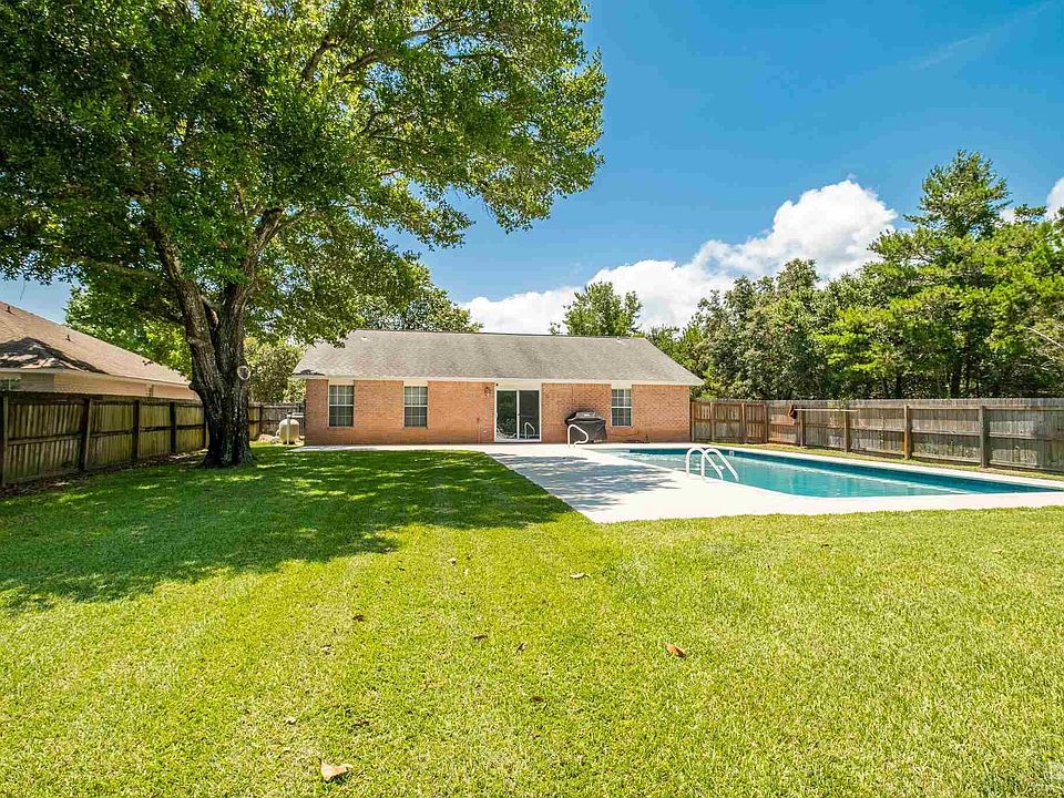 BACK ON THE MARKET BECAUSE BUYER COULDN'T QUALIFY. BRAND NEW ROOF! Looking for an opportunity to buy a pool home in Navarre with Beach access at the end of the road...this is it! The upgraded features of this Navarre home include the brand new salt water pool complete with a heat pump to extend your swimming season, travertine flooring, and spacious floor plan, definitely add value and appeal. The saltwater pool, installed in 2020, offers a refreshing amenity for relaxation and entertainment. The well water irrigation system is a convenient and environmentally friendly feature for maintaining the landscaping. The private backyard on two sides provides a serene and secluded atmosphere. Being situated in a quiet neighborhood further enhances the desirability of the home. MOTIVATED SELLERS!! Water Heater 2017, HVAC 2014, Roof 7/2023. Brand New Survey is at Reliable Land and Title, where the title work has been completed. Insurance Quote was $3,000/year