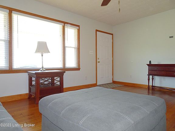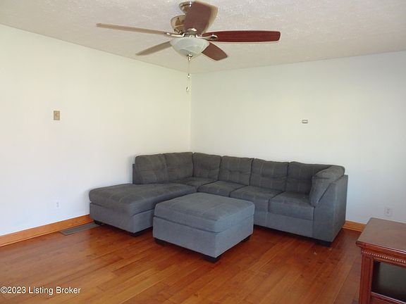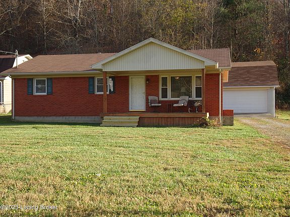 No subdivision! Little bit of country minutes to the Gene Snyder or Fort Knox, brick ranch offers 3 bedrooms, 1.5 baths, eat in kitchen with tons of oak cabinets and silestone countertop, stainless steel appliances (seller says ice maker does not work on fridge) laundry (washer & dryer can remain, but seller says one of them does not work, can't remember which one) Hardwood and ceramic floors. Covered front porch and deck. Oversized 2.5 detached garage with efficiency apartment upstairs offers bath with shower, kitchenette, laminate flooring, laundry in the garage. Lot size is a little over a half acre. Don't delay, call today!!