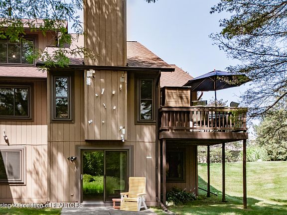 Welcome to this beautifully maintained 3+ bedroom condo perfectly situated along Carrier Creek in desirable Delta Township with Grand Ledge Schools. Enjoy the convenient location just minutes from shopping, dining, Horrocks, and major highways. Step into the inviting foyer featuring oak floors, a cathedral ceiling, and a skylight that fills the space with natural light. The main floor offers a bedroom and full bath-ideal for guests or single-level living-plus a versatile bonus room off the kitchen and foyer with a large picture window overlooking the front patio. The spacious living room features a cozy fireplace and corner windows that frame tranquil views of nature. 2 Bedrooms upstairs with large walk-in closets and 2nd bath. The open loft at the top of the stairs adds more living space for office /reading nook, etc. Downstairs, the finished walk-out lower-level offers, a fourth bedroom area, a large family room with sliding doors to patio and daylight windows. The large laundry room has ample storage and a laundry tub. Updates throughout the home include newer appliances, windows, mechanicals, roof, flooring, patio, and a low-maintenance TREX deck-perfect for enjoying the peaceful setting. This is low-maintenance condo living with the feel of a private retreat-don't miss your chance to make it yours