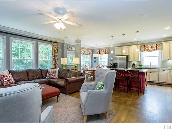 Fabulous bright & flowing home in great location!Hdwds on 1st fl,living rm/office,din rm,built-ins & heavy moldings thru out.Custom kit w/SS appl,granite,tile bksplsh,under cabinet lighting,pantry & huge island w/wine chiller opens to family rm & sunroom. Upstairs oversized MBR w/WIC, loft & 3 addtnl BR.Enjoy wooded view fr/deck, n'hood pool & greenway trails w/in walking distance.