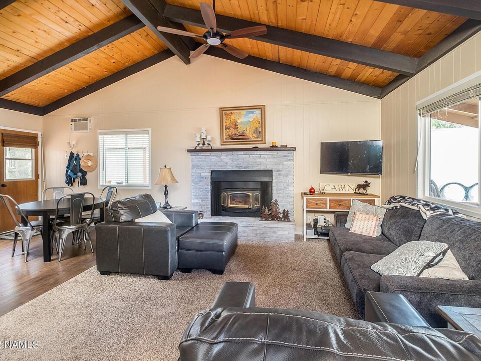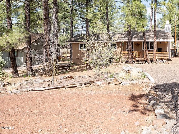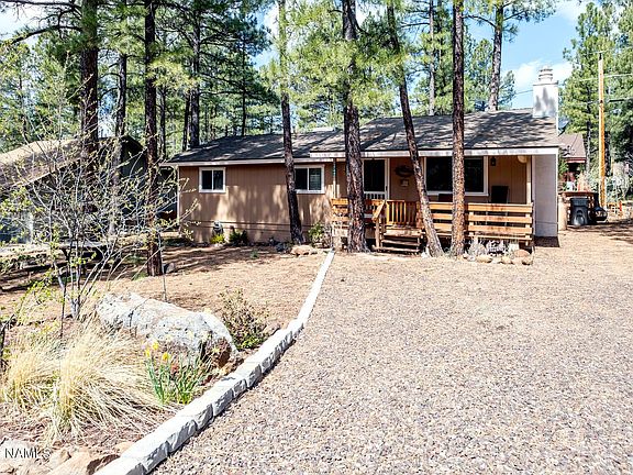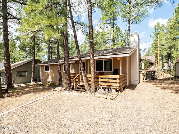 Munds Park cabin that is updated and ready to move into immediately. Three bedrooms, two bath, remodeled and updated kitchen and primary bath. Central electric heating/cooling including back up electric individual heaters. New kitchen that includes new appliances, granite counters and cabinets (self closing). Extra large skylight over the kitchen area. An additional wall air conditioning unit in the kitchen area. Newer carpet thru out, newer asphalt shingled roof. Covered front deck with an additional party deck off the back of the home. New double pane windows thru out. Propane fireplace in the living room. Large 7000 square foot lot. Plenty of room for off road parking including room the your RV.