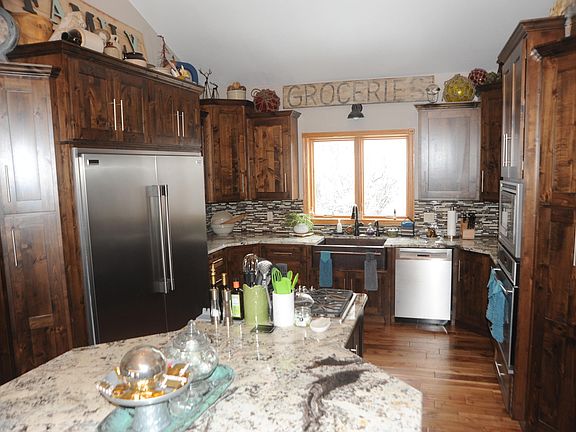 BEAUTIFUL HOME ON 50 ACRES JUST SOUTH OF WALMART 3 MILES. THE 4 BEDROOM HOUSE & 3 STALL GARAGE IS CONSTRUCTED WITH ENTERCEPT TECHNOLOGY. BASEMENT HAS INSULATED CONCRETE WALLS. 2016 REMODEL KNOTTY ALDER WOOD WORK IN KITCHEN AND MASTER, FIREPLACE, BEDROOM SUITE WITH KITCHEN. NEW FLOORING IN THE BASEMENT EARLY 2020, HALLWAY TO FINISHED AND HEATED SHOP 42' X 52' OVERHEAD DOOR (10'H X 16'W) SEE PVT REMARKS ALSO!